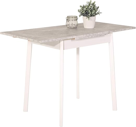 Kuchentisch Trier Ii Tischplatte Dekor Beton 4 Fuss Buche Massiv Weiss Lackiert Ausziehbar 75 112x55x74cm Amazon De Kuche Haushalt Wohnen