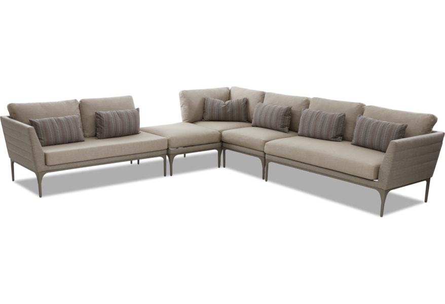 Klaussner Outdoor Urban Retreat Contemporary Outdoor Sectional With Draining Cushions Rooms For Less Outdoor Sectional Sofa Groups